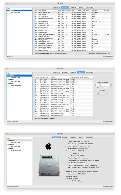 Hard drives (and solid state drives*) are the most failure prone components in your Mac. For that very reason, in fact, drive manufacturers have built in self monitoring, analysis and reporting technology right into the drive. (a.k.a. SMART) Most utilities barely scratch the surface of this information, simply reporting the bare essentials: pass or fail. Too often, once the overall failure has occurred, there isn�t enough time to get important data from the drive. With Drive Scope you can see into the health of most any drive� connected to your Mac.