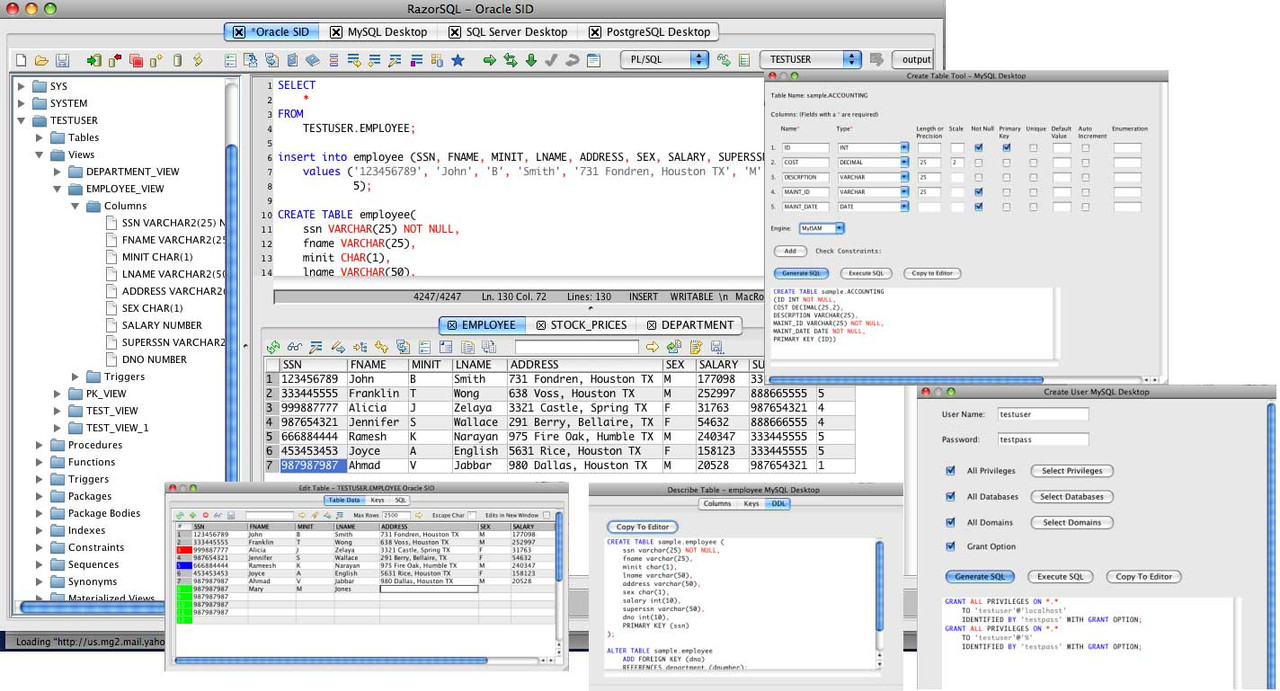 RazorSQL is an SQL query tool, database browser, SQL editor, and database administration tool for Windows, Mac OS X, Linux, and Solaris.